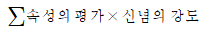 + 브랜드 태도 = 특정 상황에서 속성 i에 대한 소비자의 신념 * 특정 상황에서 속성 i에 대한 평가