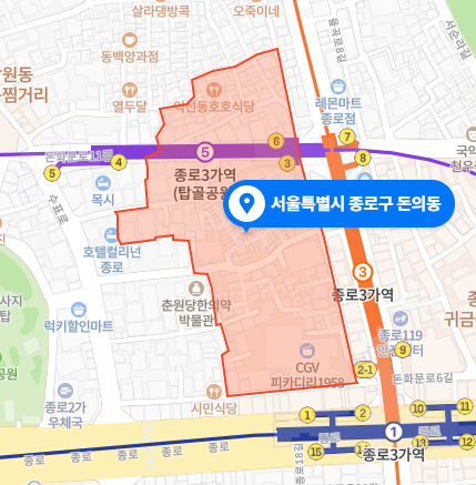 종로3가역에서 옛 피카디리 옆쪽 지역이다.