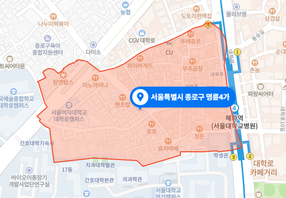 혜화역 3번출구와 4번출구 사이의 동네이다.