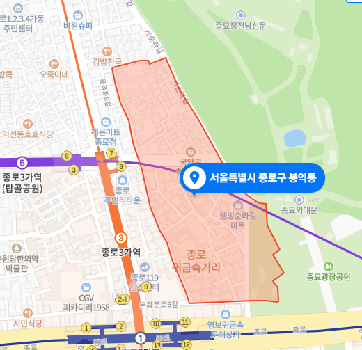 이러한 봉익동은 6.25동란 직후에 한동안 적선구역(赤線區域)인 사창구역(私娼區域)이 되었으나 지금은 도시 재개발계획으로 인한 변화로 이러한 것들은 없어지고 도심지 속의 주택가를 이루고 있다.