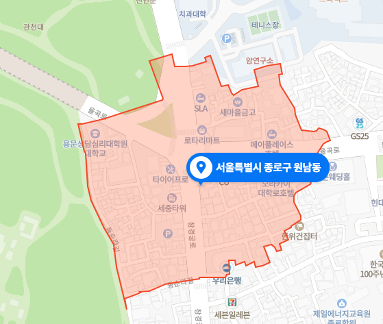 경복궁에서 창덕궁을 지나 대학로 방향으로 가는 4거리가 원남동이다.