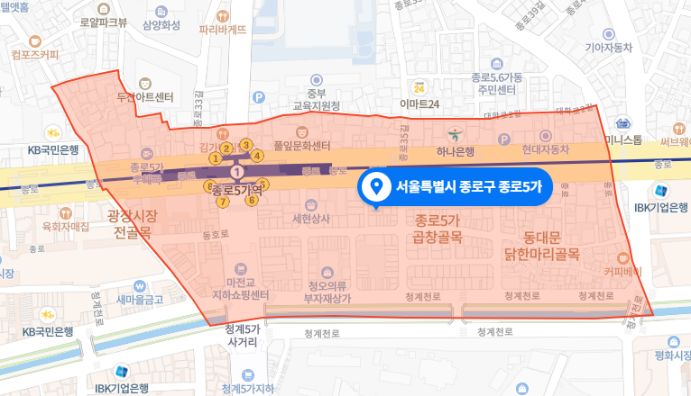 종로5가역에서 동대문 방향의 지역이다.
