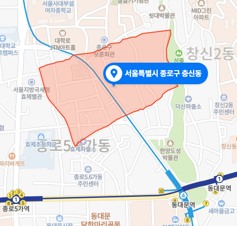 동대문과 종로5가역 사이 지역이다.