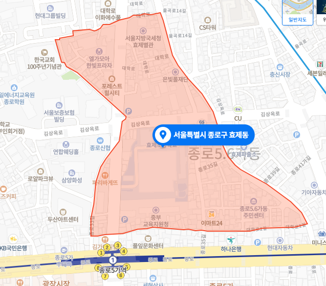 지금의 효제동 지역은 대학로 주변을 중심으로 하여 형성된 소규모 상가지역과 서민층 주택가로 구성되어 있다. 효제동을 둘러싸고 대학로와 종로5,6가 큰 도로, 그리고 율곡로 등이 교차하고, 지하철1호선과도 가까와 교통은 매우 편리한 지역이나 인근에 위치했던 서울대학교의 이전, 강남지역의 급속한 발전에 따른 인구이동 등과 관련하여 인근의 충신동과 마찬가지로 동세(洞勢)가 크게 늘어나지 않는 지역이다.