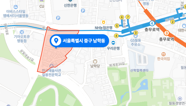 남학동 동명은 조선 태종 11년(1411)에 설치된 4부학당의 하나인 南部學堂, 즉 南學堂이 있던 데서 유래되었다. 남학동은 조선 초기 한성부 남부 성명방과 훈도방에 속했으며, 영조 때에는 남부 훈도방 자동계에 속하였다. 1894년 갑오개혁 때 南署 훈도방 주동계 주동과 성명방 주동계 남학동・주동에 속하였으며, 1914년 4월 1일 경성부 구역 획정에 따라 경기도고시 제7호로 경성부 남부 주자동・남학동 일부를 합쳐 일지출정이라 하였다. 1943년 6월 10일 조선총독부령 제163호로 區制度가 실시되면서 중구 일지출정이라 하였다. 1946년 10월 1일 일제식 동명을 우리 동명으로 바꿀 때 중구 남학동이 되어 오늘에 이른다.