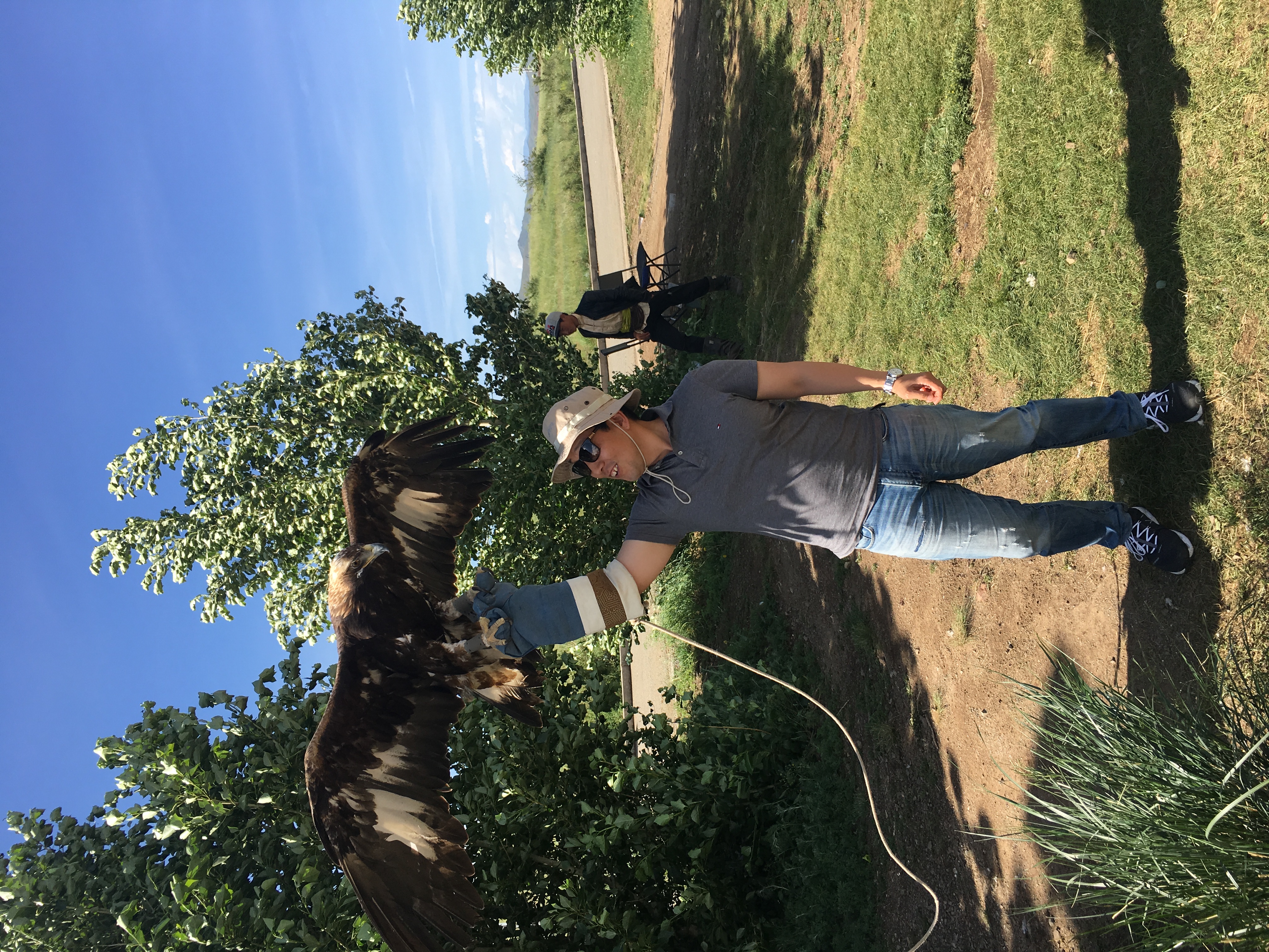 2달러만 주면 독수리와 함께 사진을 찍을 수 있다. 두꺼운 장갑을 끼고 손 위에 독수리를 올린 상태에서 팔을 내리면 독수리가 균형을 잡으려고 날개를 편다. 이렇게 반복하면서 사진을 찍을 수 있는 상품이다.
