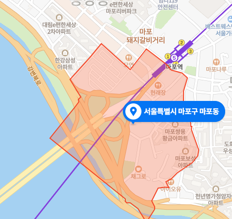 마포동 동명은 우리말 ‘삼개’로 불리어지는 포구 이름을 한자명으로 ‘마포’라고 한 데서 유래되었다. 마포동은 조선 전기 한성부 성저십리에 속하였다. 영조 27년(1751)에 간행된 ≪도성삼군문분계총록≫에 의하면 한성부 영역 안에 포함되어 한성부 서부 용산방(성외) 마포계?옹리상계?옹리중계?옹리하계 지역이었으며, 갑오개혁으로 행정구역을 개편하면서 1895년 5월 26일 칙령 제98호에 의해 한성부 西署 용산방(성외) 마포계?옹리상계?옹리중계?옹리하계가 되었다. 1911년 4월 1일 경기도령 제3호에 의해 경성부 용산면 마포가 되었고, 1914년 4월 1일 경기도령 제3호와 경기도고시 제7호에 의해 경성부의 5부 8면제를 폐지하면서 마포 일부는 도화동으로 다른 일부는 마포동으로 하였다. 동년 9월 27일 경성부조례 제8호에 의해 마포동은 용산출장소의 관할이 되었다. 1936년 4월 1일 조선총독부령 제8호와 경기도고시 제32호에 의해 경성부 행정구역이 확장될 때 경성부 마포정이 되었다. 1943년 6월 10일 조선총독부령 제163호에 의해 실시된 區制度에 의해 경성부 서대문구 마포정이 되었다가, 1944년 10월 23일 조선총독부령 제350호로 마포구가 신설되어 마포구 마포정이 되었다. 1946년 10월 1일 일제식 동명을 우리 동명으로 바꿀 때 마포구 마포동이 되어 오늘에 이른다.