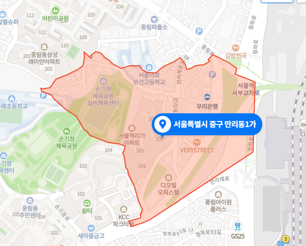 만리동1가 동명은 만리동 지역을 분할 관리하면서 붙여진 이름이다. 만리동 동명은 萬里峴 고개 이름에서 유래되었는데, 만리재는 세종 때 문신 崔萬里가 살던 곳이라 하여 붙여진 이름이다. 만리동1가는 조선 초기 한성부 서부 반석방에 속했으며, 영조 이후에는 서부 반석방 약전계와 조전계 동산동(속칭 만리현)이 되었다. 1914년 4월 1일 경성부 구역 획정에 따라 경기도고시 제7호로 서부 반석방의 중동과 동산동 각 일부를 병합하여 봉래정3정목이라 하였으며, 1943년 6월 10일 府令 제163호로 區制度가 실시되면서 서대문구 봉래정3정목으로 되었다. 1946년 10월 1일 일제식 동명을 우리 동명으로 바꿀 때 봉래정3정목은 만리재의 이름을 따서 만리동1가로 하였으며, 1975년 10월 1일 대통령령 제7816호로 區의 경계조정을 할 때 만리동은 중구 관할이 되어 오늘에 이른다. 1980년 7월 1일 서울특별시조례 제1413호에 의해 중림동 관할구역으로 병합되어 오늘에 이른다.