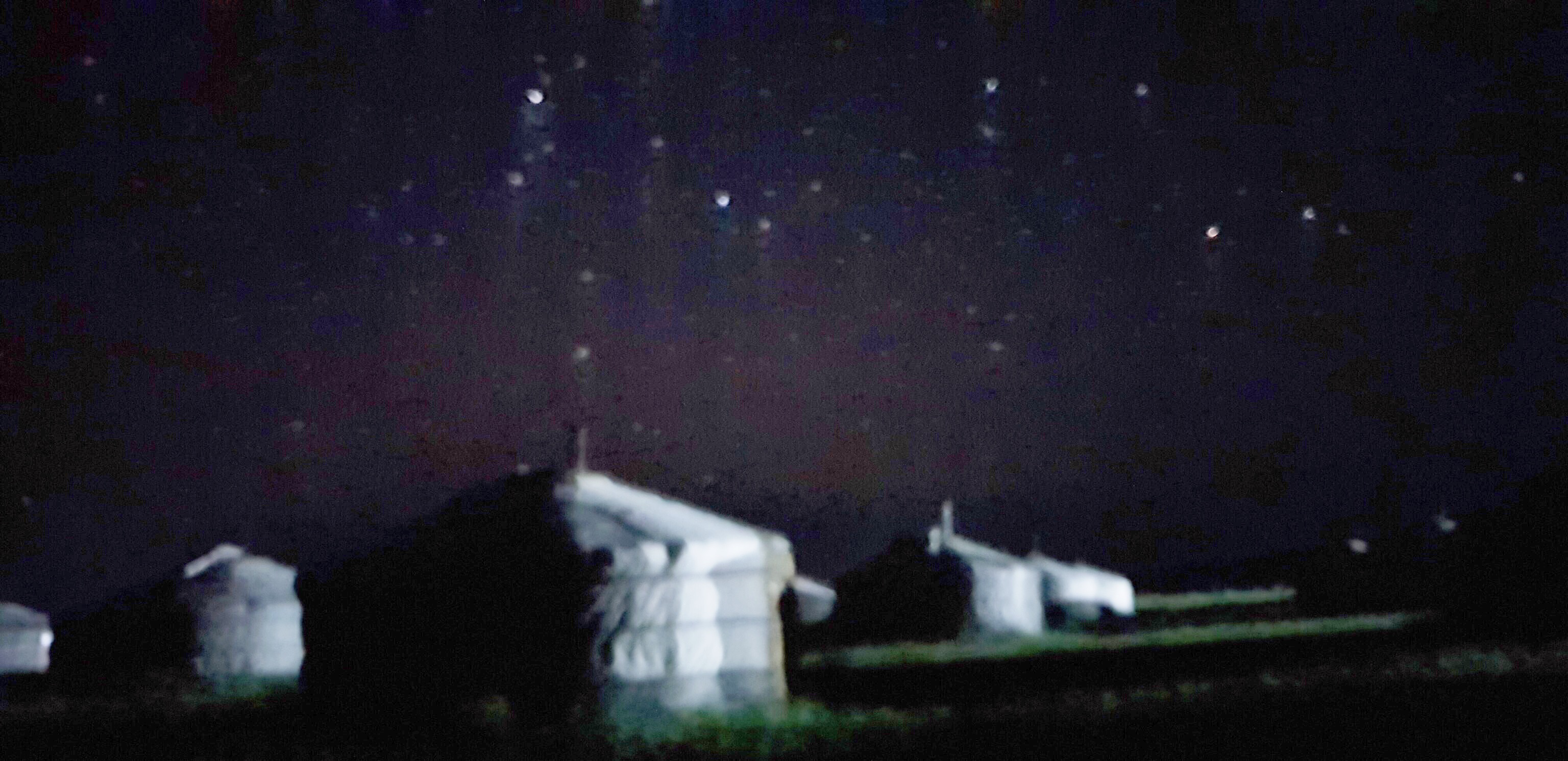 게르 천정은 빛이 들어오라고 유리인지 플라스틱인지 투명한 재질로 되어 있다. 자다가 잠시 눈을 떠보니 창문 사이로 별들이 보였다.