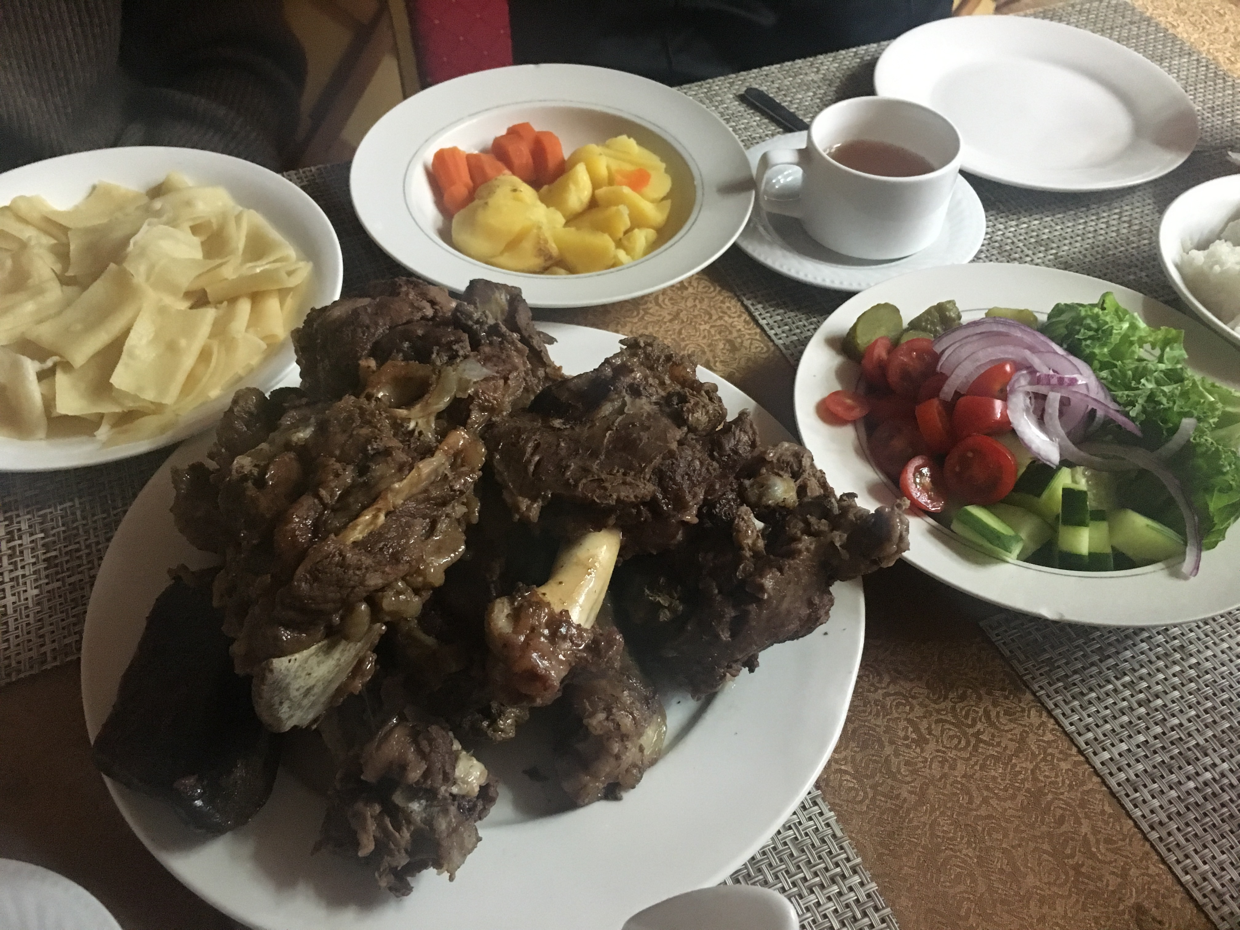 저녁식사로는 전통방식 양고기를 먹었는데 사진에서 보이다시피 비주얼이 압권이었다.