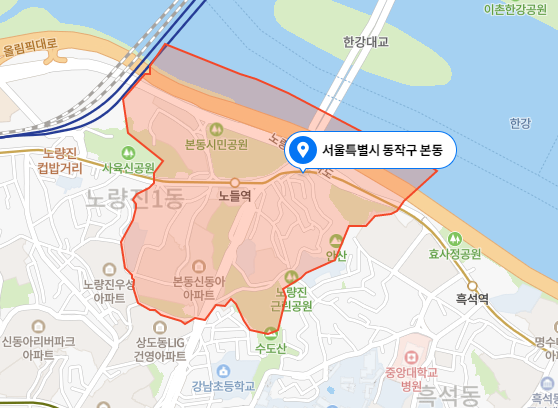 본동 동명은 조선시대부터 오랫동안 불려졌던 마을 이름으로 노량진의 원 마을이라는 뜻에서 유래되었다. 본동은 조선시대 말까지 경기도 과천군 하북면 본동・상가차산리・하가차산리 지역이었다. 1914년 3월 1일 조선총독부령 제111호와 동년 4월 1일 경기도령 제3호에 의한 경기도 구역획정 때 시흥군 북면 본동리라 하였다. 그 후 1936년 4월 1일 조선총독부령 제8호에 의해 경성부에 편입되어 경성부 본동정이 되었고, 1943년 6월 10일 조선총독부령 제163호로 區制度가 실시되면서 영등포구에 속하였다. 광복 후 1946년 10월 1일 일제식 동명을 우리 동명으로 바꿀 때 영등포구 본동이 되었다. 1973년 7월 1일 대통령령 제6548호로 영등포구에서 관악구를 분리 신설할 때 관악구에 이속되었고, 1980년 4월 1일 대통령령 제9630호로 관악구에서 동작구를 분구하면서 본동은 동작구에 속하여 오늘에 이른다.