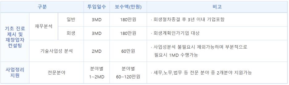 (사업정리지원 연계 시 최대 8일 420만원까지 가능)