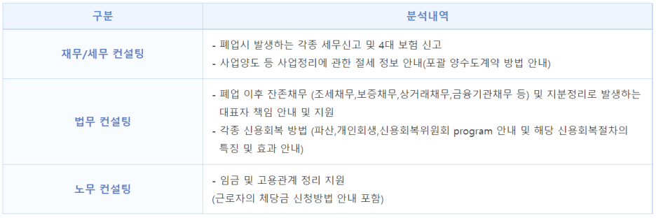 ※ 맞춤형 처방 : 구조개선전용자금 지원, 회생컨설팅 연계, 사업정리컨설팅 연계