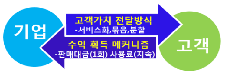 기업과 고객 간의 관계에서 기업이 고객에게 전달하는 가치 전달방식과 고객을 통해 수익을 획득할 수 있는 메커니즘의 다변화가 필요합니다.