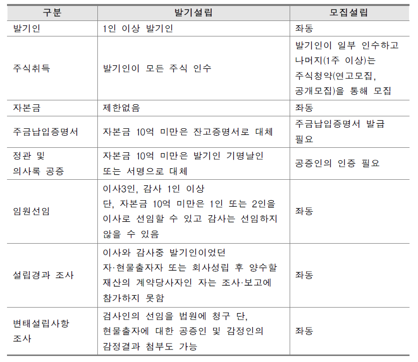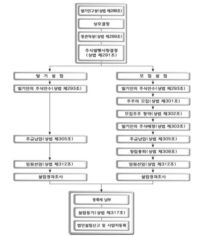 또한 회사의 설립 방법을 발기설립, 또는 모집설립 중 어떤 것으로 할 것 인가는 발기인들의 합의에 의하여 임의로 결정할 수 있습니다.