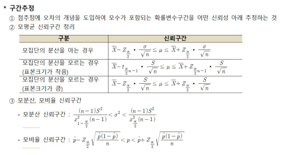 ② 구간추정 : 모수를 포함한다고 추측되는 구간을 구하는 방법. 신뢰도를 함께 구할 수 있음