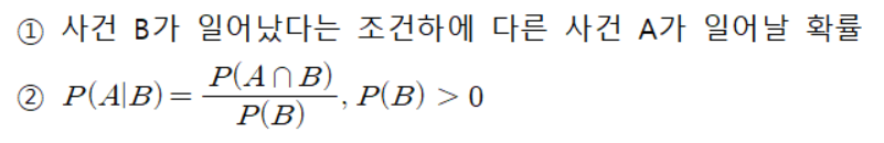- 어떤 사건이 발생했다는 조건 하에서 다른 사건이 발생할 확률을 계산하는데 사용