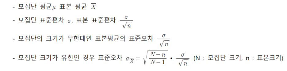 - 표본에서 선택된 대상이 모집단의 특성을 추정함으로써 발생하는 모집단과 표본의 오차 범위