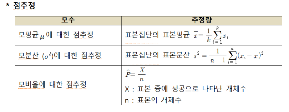 ① 점추정 : 모수를 단일치로 추측, 신뢰도를 구할 수 없는 단점
