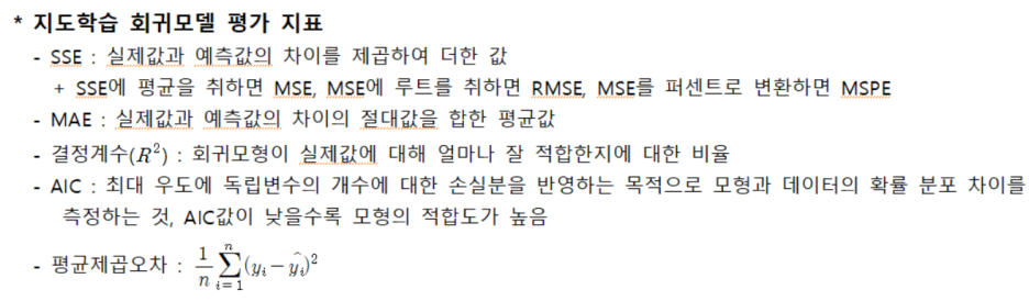 ① 회귀모형에 대한 주요 성능평가 지표 : SSE, 결정계수 R2, MAE, MAPE