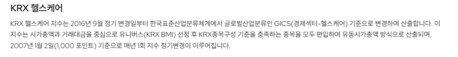 한국거래서(KRX)의 KRX헬스케어 지수를 추종하는 ETF이다.