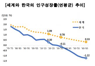 - 인구성장이 정체가 되면 세계 1인당 생산 증가가 더 커져야 성장률 유지