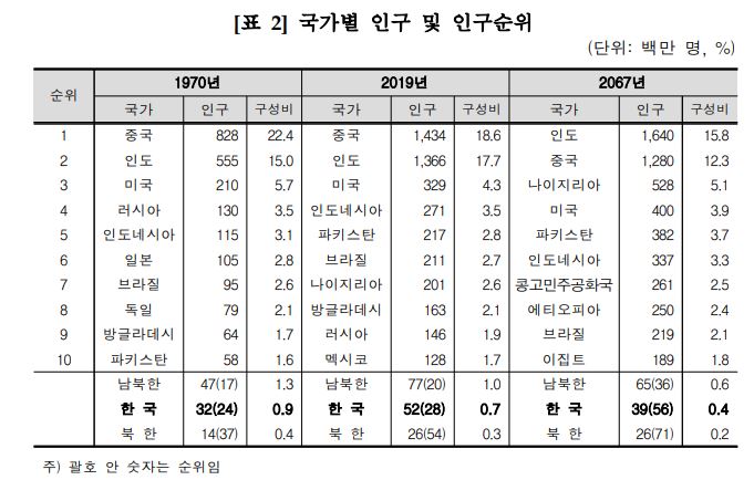 '2019년 장래인구특별추계를 반영한 세계와 한국의 인구현황 및 전망')