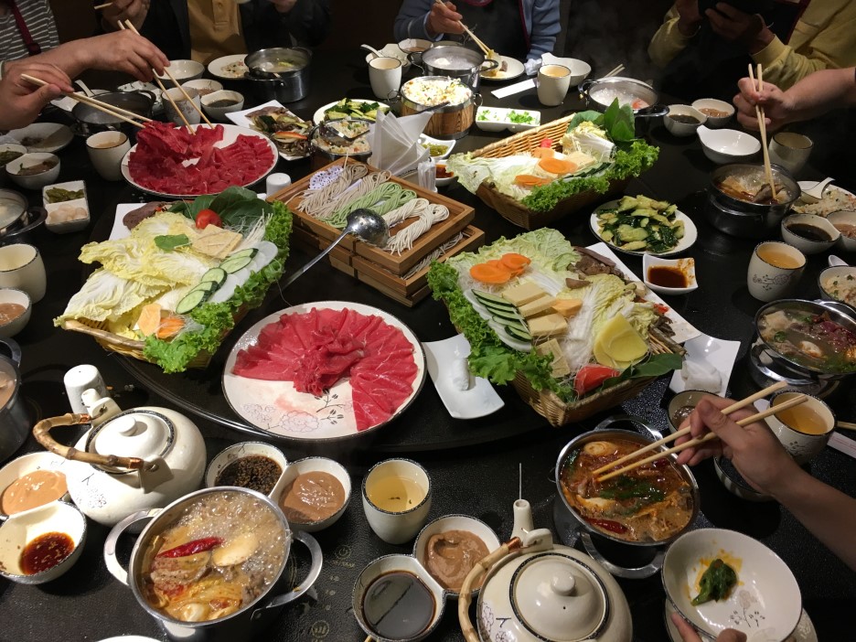 샤브샤브 메뉴는 사진에서 보다시피 어마어마했다. 고기는 소고기, 말고기, 양고기가 있고 개인별로 탕그릇이 있어 맛을 정할 수 있었다. 진짜 고기 양껏 먹었는데 일행분이 자기들이 쏘시겠다고 더 먹자고 하셨다. 메뉴판을 보니 고기 한접시가 우리나라돈으로 4500원이었다. 어떤분 말씀으로는 아마 사료값이 들지 않을테니 싼 것 같다고 하셨다. 그말에 공감한다.