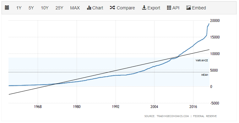달러 통화량을 보면 M2(현금 + 요구불예금 등 + 저축성 예금 등) 1950년대에 비해 기하급수적으로 늘었다는 것을 확인할 수 있다.