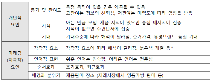 + 제품요인 : 주관적인 욕구와 가치를 충족시키는 제품, 높은 수준의 지각된 위험(예기치 않은 결과에 대한 불안감)을
